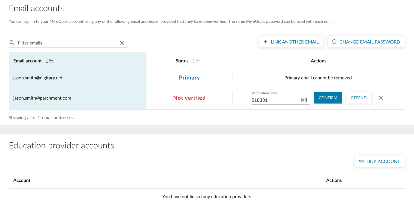 Step 8: Your personal email address is now added and verified, ready for use in logging in. Your password remains the same.