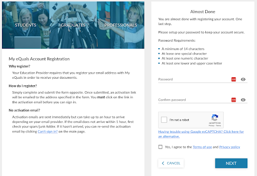 How to register on My eQuals with an email